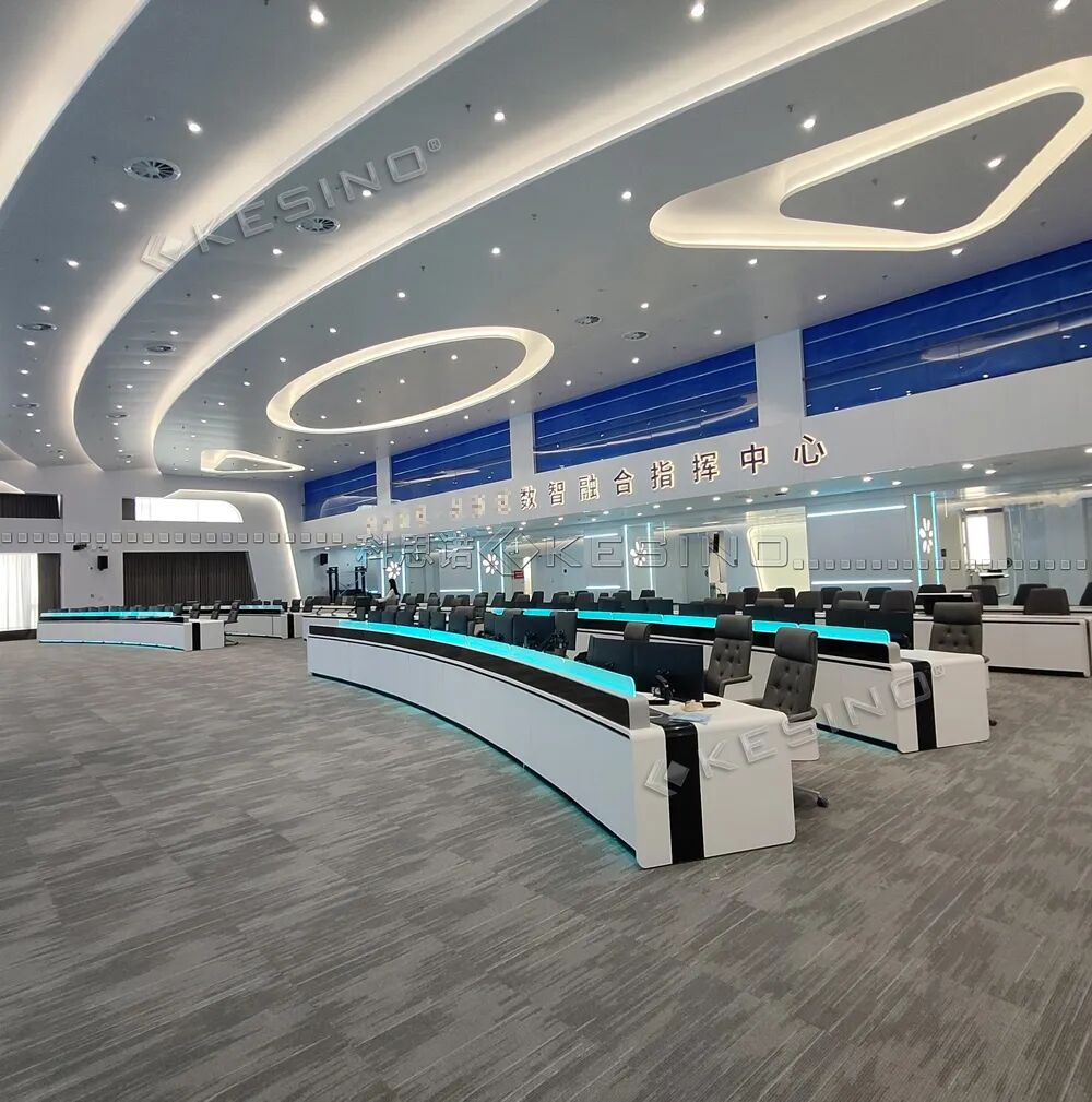 在新型智慧城市建设浪潮中,指挥中心作为城市运行的“智慧大脑”,其硬件支撑体系直接决定着应急响应、数据调度与协同管理的效率。科思诺作为专业控制台与操作台解决方案提供商,凭借KCA系列产品的定制化能力,为国内东南沿海某核心区域数智融合指挥中心打造了一套高效、稳定、人性化的操作中枢。该指挥中心承担着城市全域感知、应急联动、数据中枢运营等核心职能,需要同时满足数十个席位的7×24小时不间断作业。针对项目空间布局与业务流程需求,科思诺团队量身定制了KCA型号控制台与操作台,采用直排+拐角的组合排列方式,既保障了单个操作席位的独立性与专注度,又通过拐角布局实现了不同业务组之间的信息联动,让指挥调度指令与数据流转更加高效顺畅。在产品性能上,KCA控制台采用高强度铝合金框架,每米可承载200kg设备,完美适配多屏监控终端、调度主机等专业设备的稳定运行需求。台面选用E0级环保HPL板材,搭配聚氨酯封边工艺,具备防潮、抗划、防静电等特性,既守护操作人员健康,又能应对高强度连续作业的磨损考验。同时,产品内置强弱电分离布线系统与自然风冷散热模块,彻底解决传统操作台线缆杂乱、散热不佳、信号干扰等行业痛点,保障指挥中心设备长期稳定运行。在人体工学设计层面,KCA操作台充分考虑长时间值守的作业需求,桌面高度、座椅适配角度与多屏支架调节范围均符合人体工学标准,有效减轻操作人员视觉疲劳与肌肉劳损。直排布局满足集中化监控、统一调度的核心场景,拐角操作台则灵活衔接空间转角,实现各业务席位无缝协同,让操作人员可快速共享监控画面、城市体征数据与应急预警信息,形成“一屏观全域、一网管全城”的高效指挥作业体系。作为专业的控制台与操作台厂家,科思诺始终以客户需求为核心,从方案设计、生产制造到现场安装,为指挥中心、控制中心、监控中心等场景提供全流程定制化服务。此次数智融合指挥中心项目的落地,不仅验证了KCA系列控制台在智慧城市领域的适配性与可靠性,更彰显了科思诺在高端指挥中心硬件解决方案领域的核心竞争力。未来,科思诺将持续迭代控制台与操作台产品,为更多行业客户打造高效、智能、人性化的指挥作业环境。